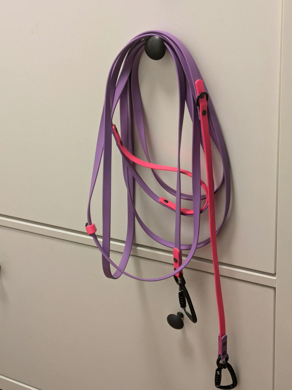 My dog's foster mom recommended this leash, and I'm so glad she did! I love the bright colors (I chose flamingo and lavender) and the custom lengths/handles! I chose the 15-foot leash and it's honestly my perfect length for hikes and neighborhood walks practicing loose leash and recall.