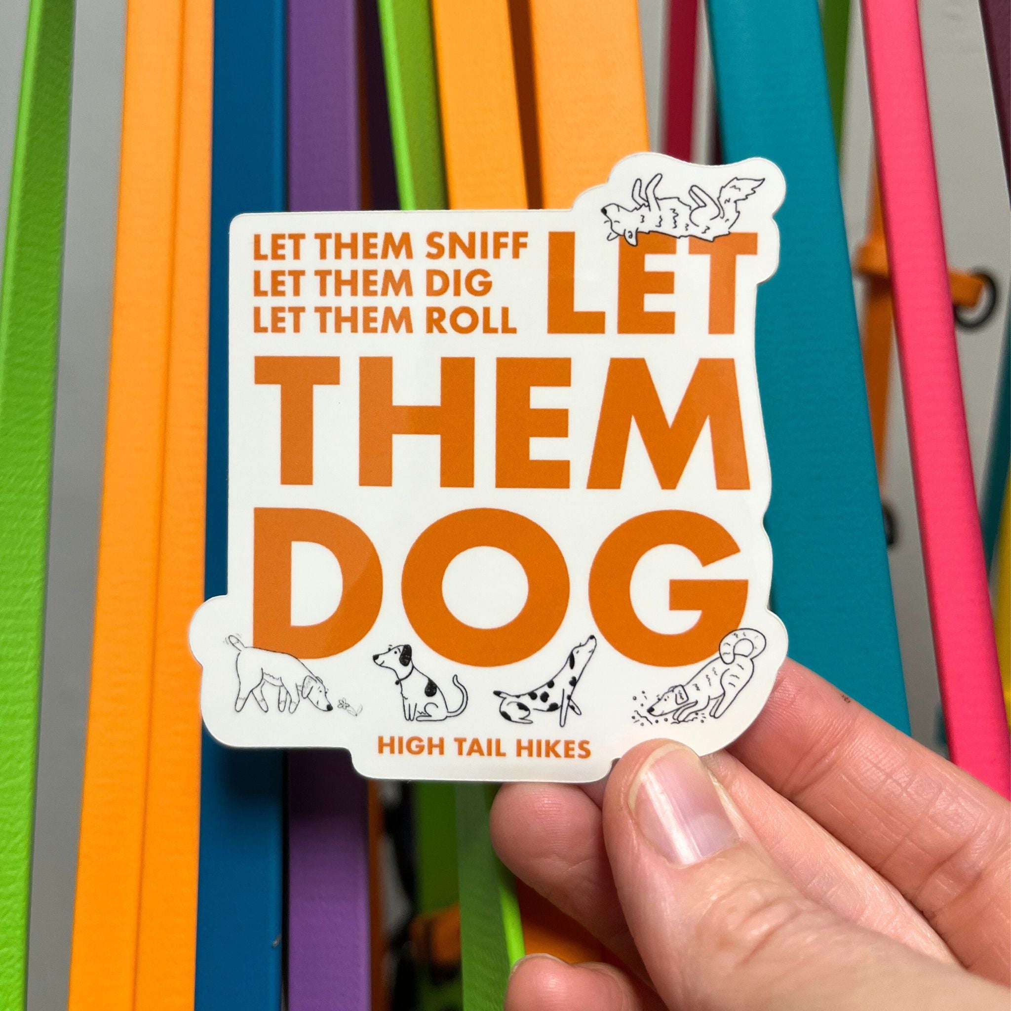 Our fan favorite design in sticker format! Remind the world to let their dogs be dogs with this adorable sticker with hand drawn dogs shown sniffing, digging, and rolling. Perfect for your water bottle or laptop. Designed by Adam Planas for High Tail Hikes .