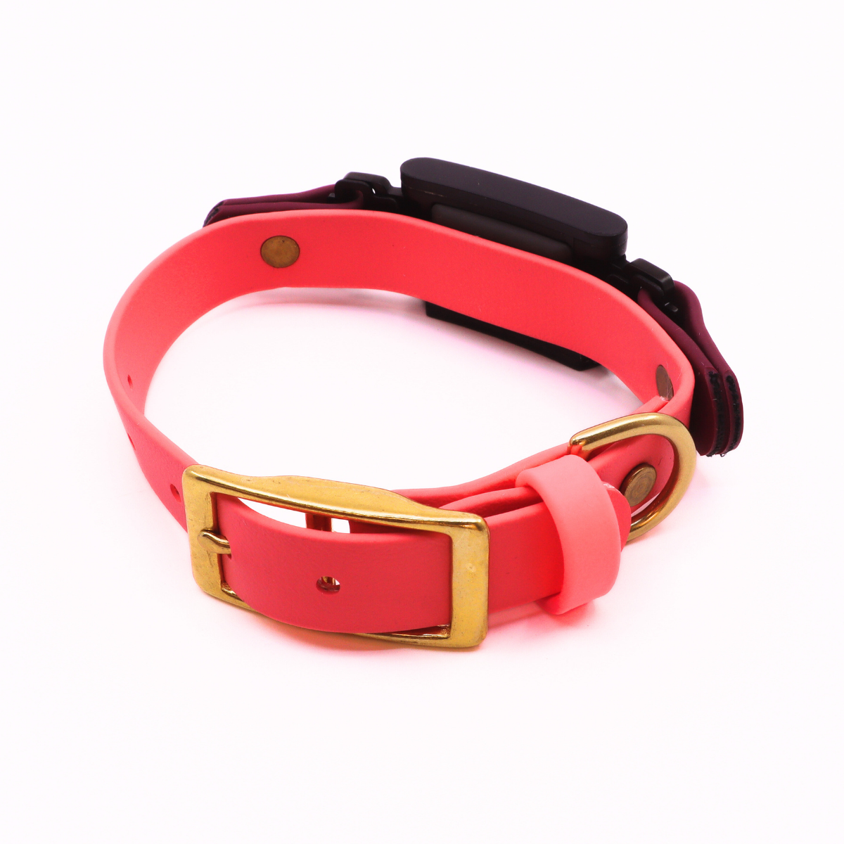 Pre Made Brass Fi Series 3 Layered Collar - 3/4" Width - Small (Fits 9-12") - Coral with Plum + Flamingo Keeper Strap