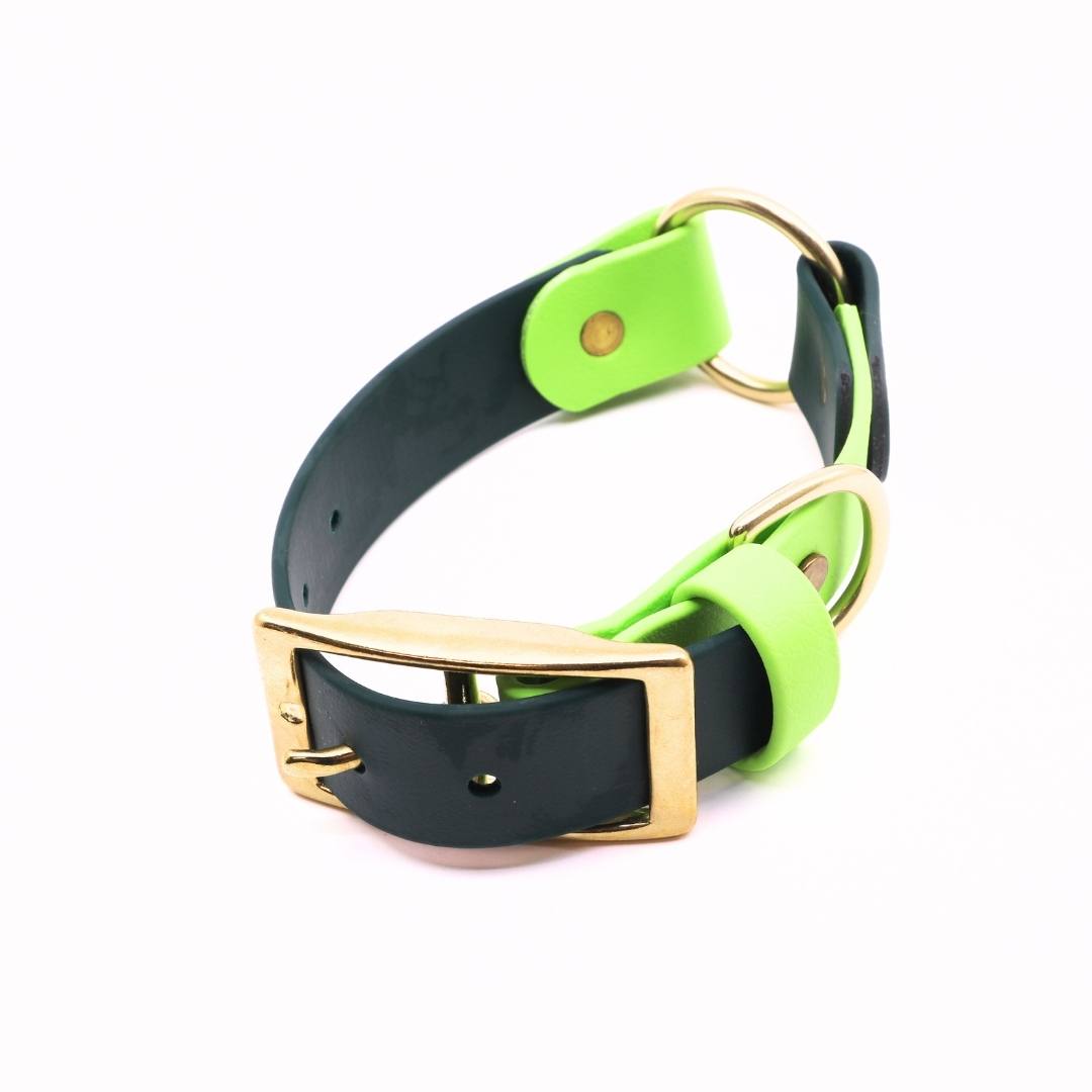 Pre Made Brass O-Ring Collar - 1" Width (Fits 9-12") - Forest Green with Green Apple Keeper Strap