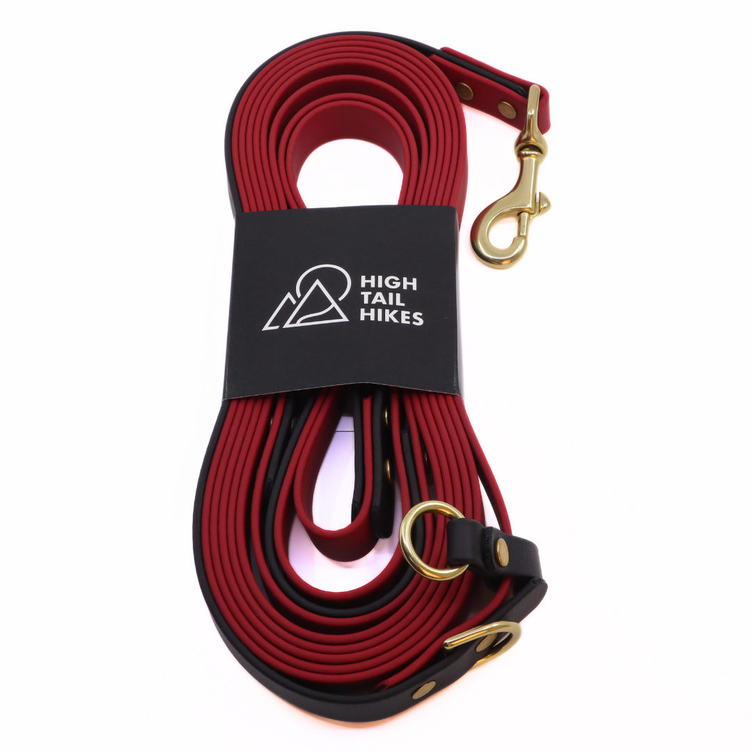 Pre Made Simple Brass Hands Free Long Line - Large (3/4") - 15 ft- Chili Red with Black - Traffic Handle at 36"