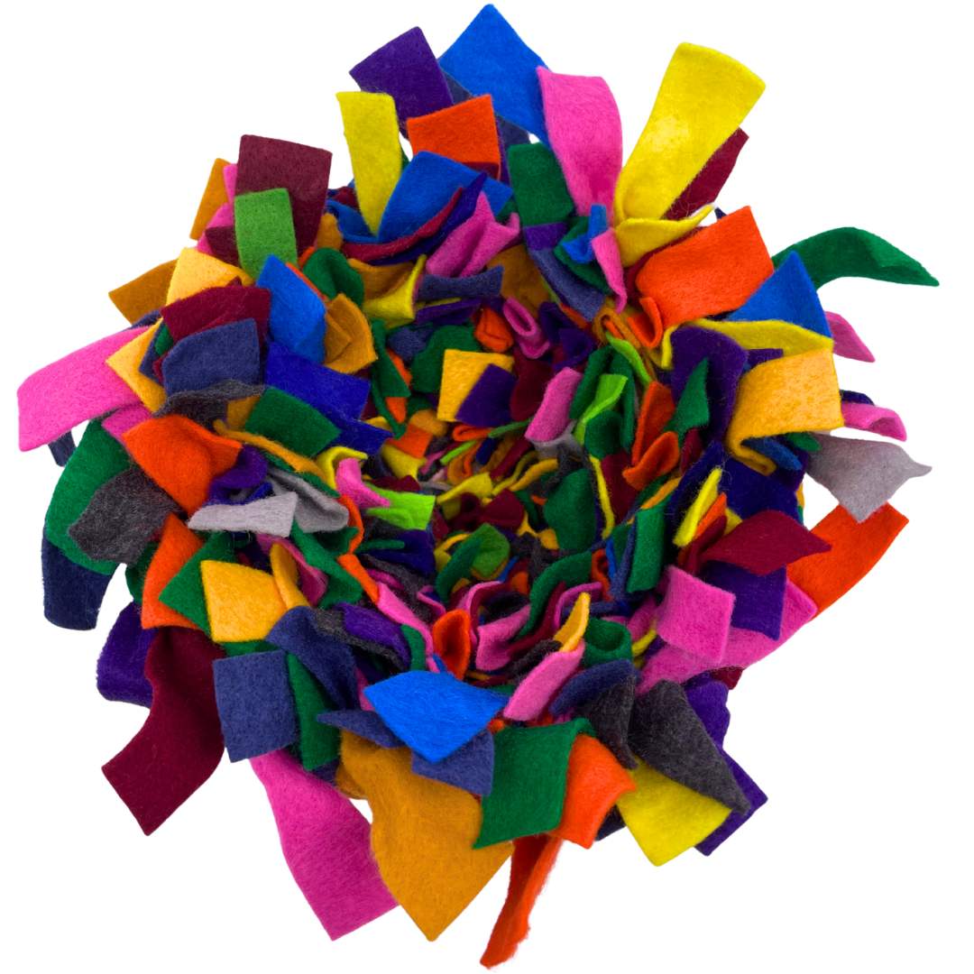 Our snuffle baskets are proudly made by hand by our Production Manager Cory Abshear! Each snuffle basket is handmade by individually tying each piece of felt into the plastic basket. If you have a more rough and tumble pup that likes to shred things, the basket might get a little damaged. Our baskets are not eligible for return or exchange, but we can provide replacement felt strips if needed. Coupon codes are not valid on snuffle baskets. Please contact us if you have any questions about snuffle mats before purchasing.